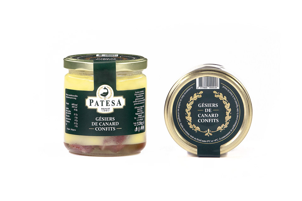Ingredients: duck gizzards (60%), duck fat, salt