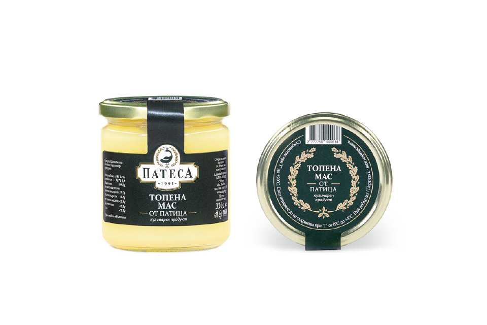Рафинирана мазнина от патица - кулинарен продукт, подходящ за приготвяне на различни ястия и тестени изделия.